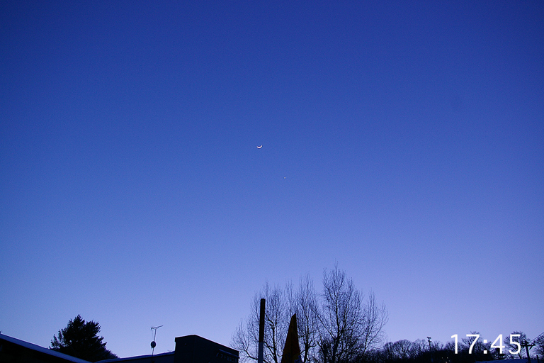 さらに日は暮れ、今度は月のすぐ近くに、金星も見えてきました。