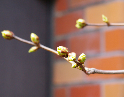 地下鉄の通気口からの温かい空気が当たり、他よりも少し成長が早まる、ライラックと桜。