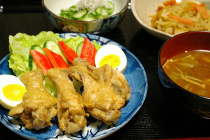 今夜のメニューは、ゆで卵と手羽元の甘辛煮でした。