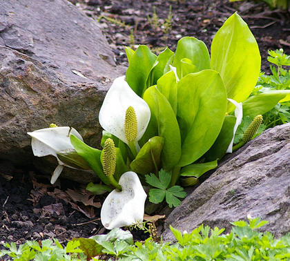きれいなミズバショウの花。