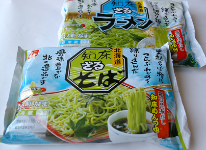 お馴染みの菊水の「知床ざるそば」「知床ざるラーメン」のパッケージが新しくなっていました。