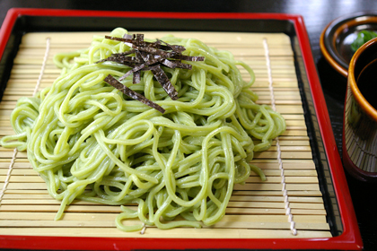 更科そば粉に、羅臼こんぶとわかめが練り込まれ、風味豊か。