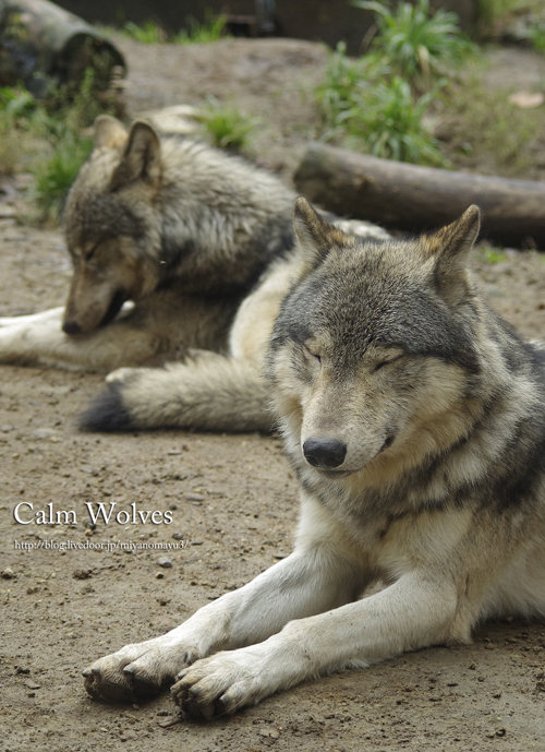 オオカミのお食事タイムが終わり、ちょっと満たされたオオカミたち。