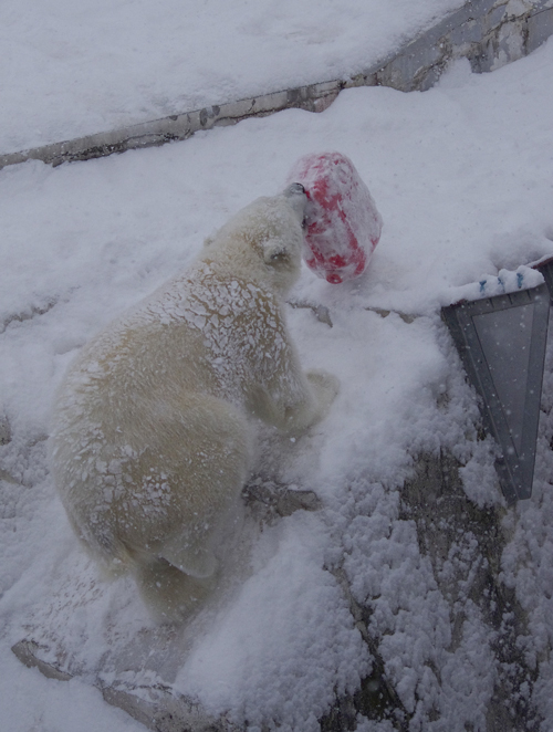 大雪の中でも、変わらず元気に遊ぶアイラ。