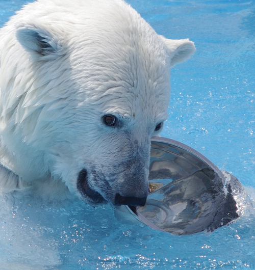 今度は、ゆっくり自分のペースで、プールの中に残った野菜、リンゴ、ホッケを探して食べます。