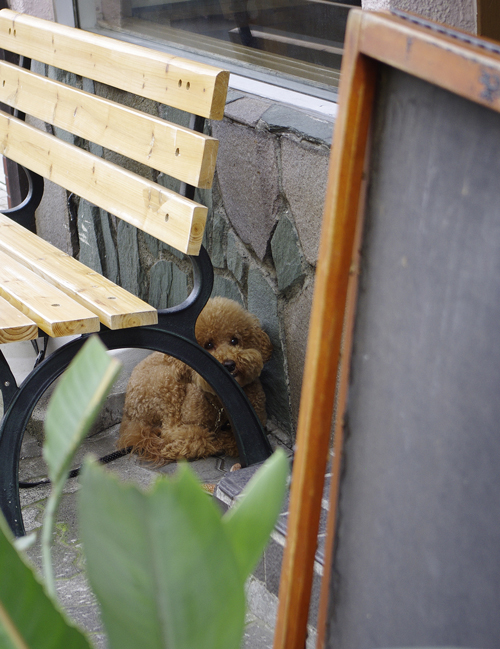 店頭には、ワイルドなオオカミとは程遠い、かわい過ぎるワンコが、看板犬らしく繋がれてました。