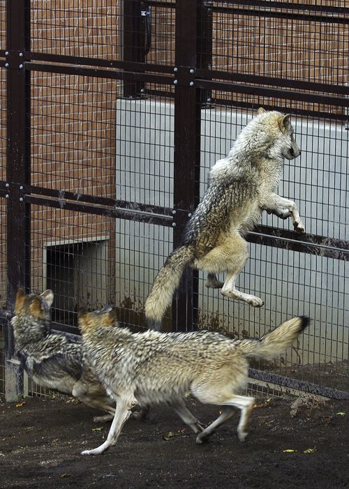オスたちには、裏手から肉を投げ入れられていました。