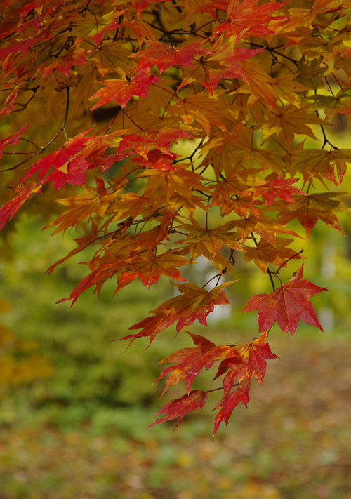 こちらも、緑~黄色~赤の変化、グラデーションが美しいモミジ。