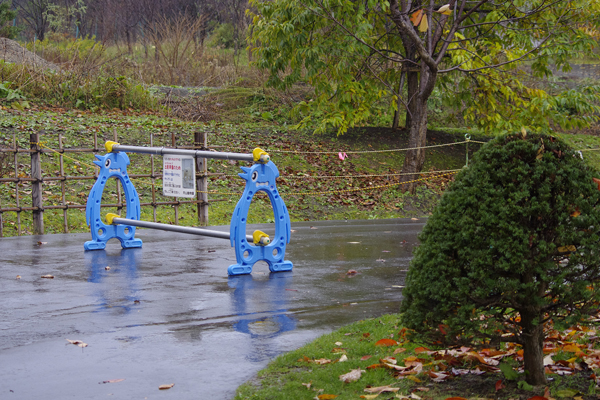 今朝から世界の熊館が全面閉鎖となり、広く人止ロープが張られました。