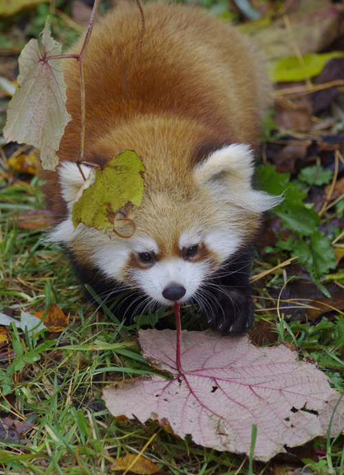 レッサーパンダ舎前のサクラの葉が、オレンジ色に変わっていました。(ギン)