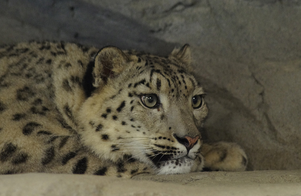 アクバルは、時々、座って休みますが、ほとんど、ガラス面沿いに歩く姿。