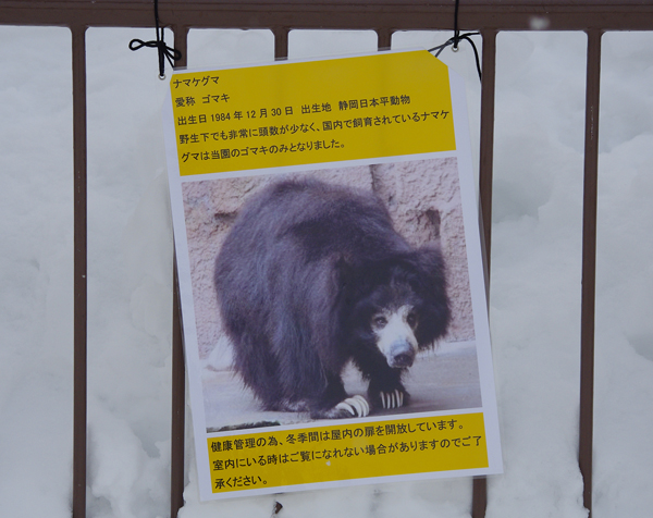 現在、日本国内にいるナマケグマは、ゴマキ一頭だけになります。