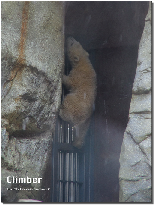 ホッキョクグマ仔グマ のぼる