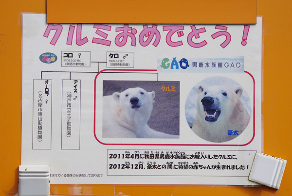 今日の新聞記事で、男鹿水族館GAOのミルク(メス)が、釧路市動物園に移動するとありました。