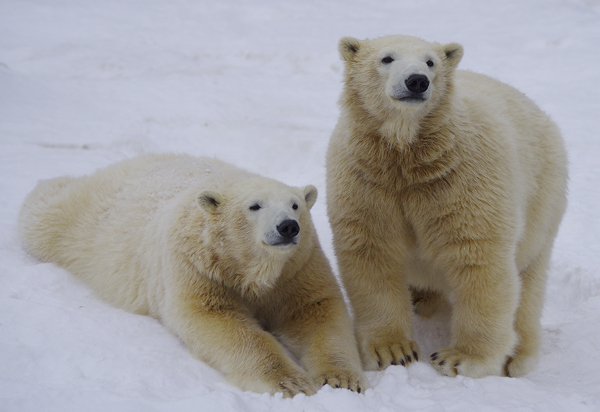 何をしているのか、興味津々のマルル(手前)とポロロ(後ろ)。