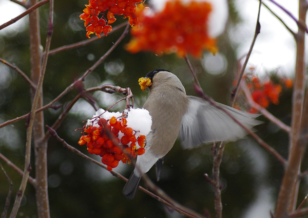 ナナカマドの実をついばむ姿では、他に、ヒヨドリ、ムクドリ、カラスを頻繁に見ます。