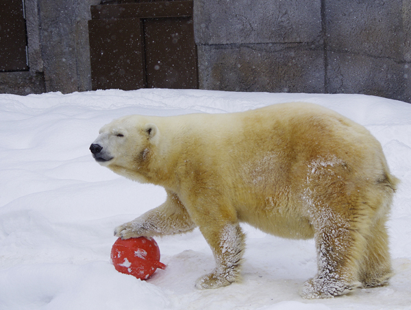 新しい浮き球のおもちゃを、投げ入れてもらいました。