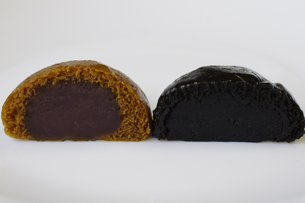 ご黒うさん。は、黒糖生地に、さらに箱根の竹炭を重ねて、黒々とした生地。