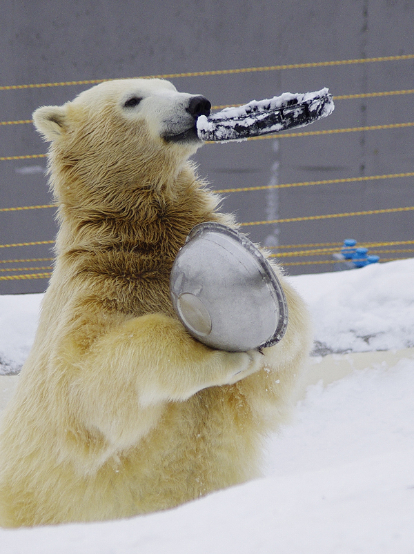 屋外に出すために、飼育員さんが、カギをチャリチャリ~ンと鳴らしました。