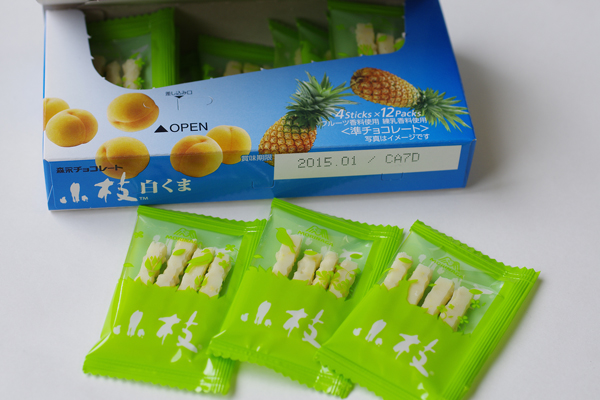 小枝白くま 158円、くまモンポッキー 88円で購入。