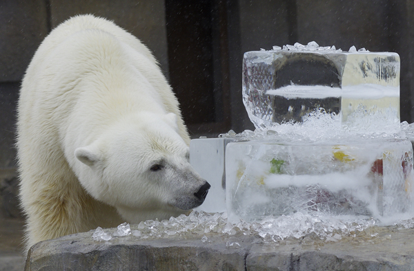 それでも予定通り始められた、ホッキョクグマへの氷のプレゼントです。