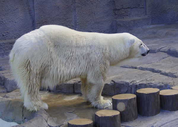 ホッキョクグマ舎を、ちょっと離れたスキに、プールに入っていたようすのキャンディ。
