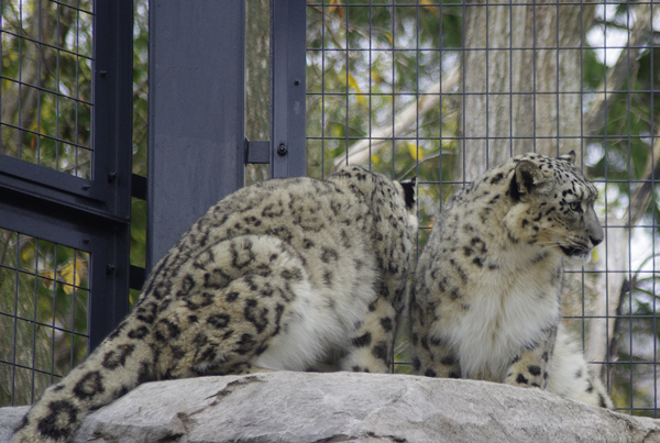 いつも肉は、寝室に収容されてから食べている、ユキヒョウたち。