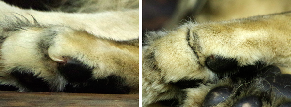 伸び過ぎた爪が、肉球に当たるまで達しており、