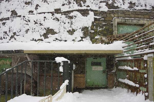 除雪車が通った跡がありますが、獣舎から少し離れた場所に道が出来ていたため、