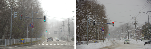 今(右)はすっかり雪景色。