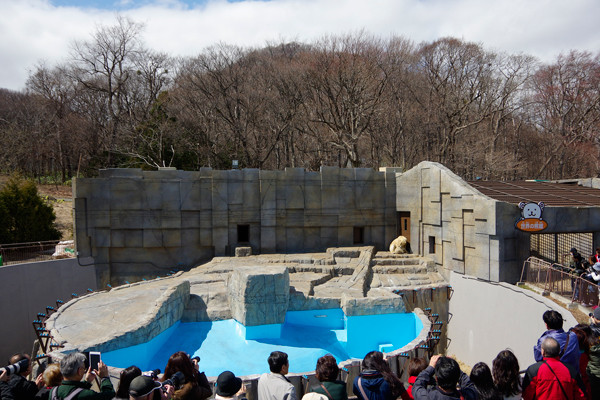 好天の今日は、来園者も多く、賑わうホッキョクグマ舎前。