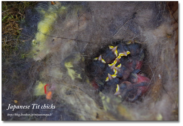 スポンサーリンク 孵化6日目 2015.05.16 9羽のヒナがそれぞれ大きくなってくるので、 穴が少し広がった気がします。 昨日に比べ、頭はさらに黒い部分が増え、 翼の羽根が伸びてきました。 背中の羽根も伸び始めてきました。 目はまだ開いていないようです。 今日の様子です。