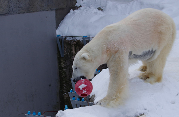 デナリは、大玉の上にボビンを乗せようとしていましたが、難しかったようです。