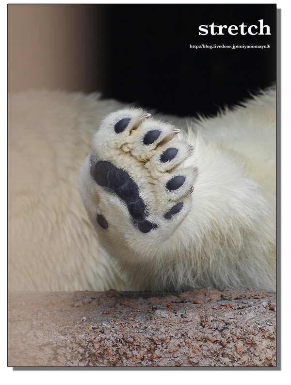 毛で覆われてるしろくまにはきつい季節になりましたね。夏毛には生え変わると思うのですがそれにしても暑そう😫着ぐるみみたいに脱げればいいのに笑。リラが伸びをした時の肉球の開きがなんともいえないですね。大人になると毛で覆われてしまうので開きが見えにくそう…。触ると亀の子たわしみたいな感触なのかしら?それともふわふわしてるのかな?