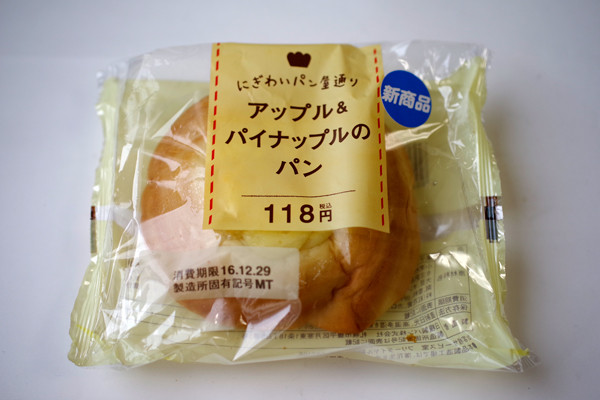 ロールしたパンの中央に、カスタードクリームと、アップルとパイナップルが入っています。