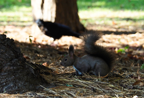 動く陰に気づくと、そこにエゾリスが。