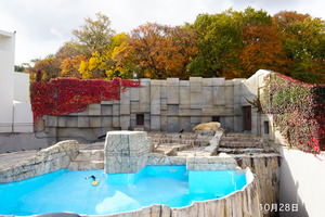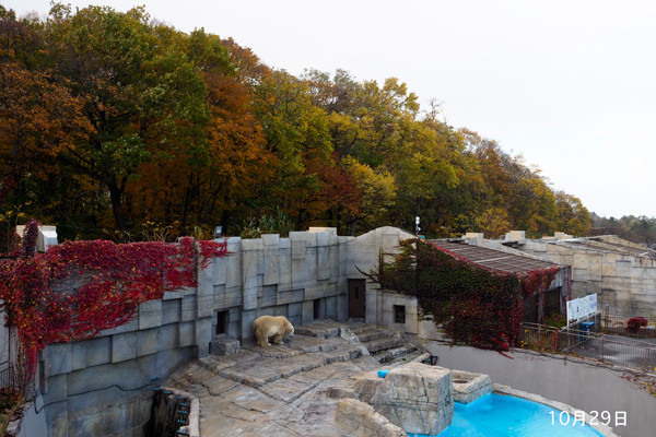 今日は風も強く、ホッキョクグマ館にも、落ち葉がたくさん舞い込んでいました。