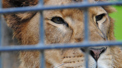 ライオンのリッキーは、屋内清掃中の時間だけ屋外に出ています。