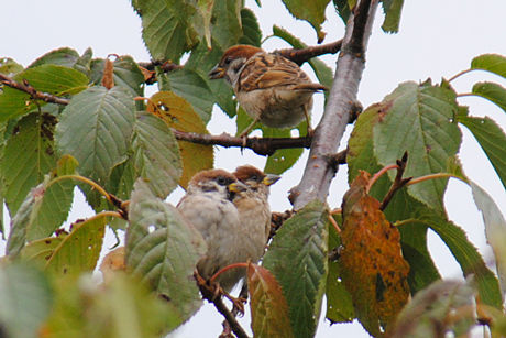 スズメの幼鳥がたくさん止まって、チュンチュン鳴いていました。