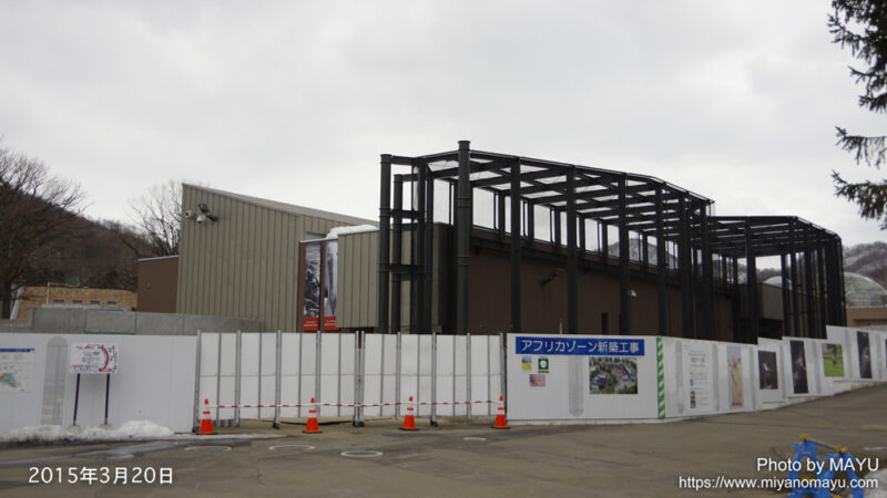 2013年11月に着工され2015年7月には完成となったアフリカゾーンは、カバ・ライオン館とキリン館の2棟からなる、アフリカエリアを生息地とする動物や植物を展示するゾーン。当初は2015年秋にオープンする予定とされていましたが、施設や動物の輸送方法の再チェックをすることになり、オープンが先延ばしされました。