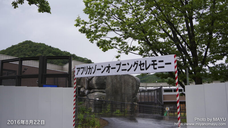 アフリカゾーンのオープニングセレモニーの日は、雨が降っていたことを思い出します。