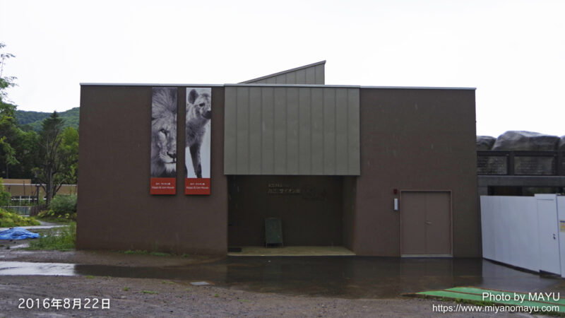 ハイエナ舎側のシンボルサインは、ライオンのリッキーとブチハイエナのカムトリの写真が、イメージとして採用されていました。