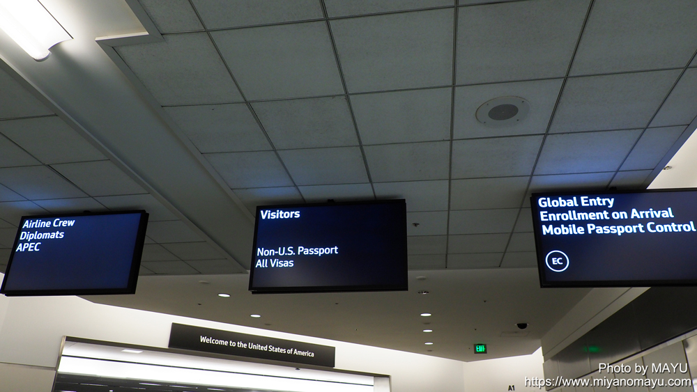 サンフランシスコ国際空港での入国審査。Visitorsの方へ進んでいきます。以前と違い、今はESTA申請を事前にしているためか、入国まではとてもスムーズに進んでいき、質問にいくつか答える程度で、指紋を採られることもありませんでした。ハワイなどに比べると質問事項は多めでしたね。