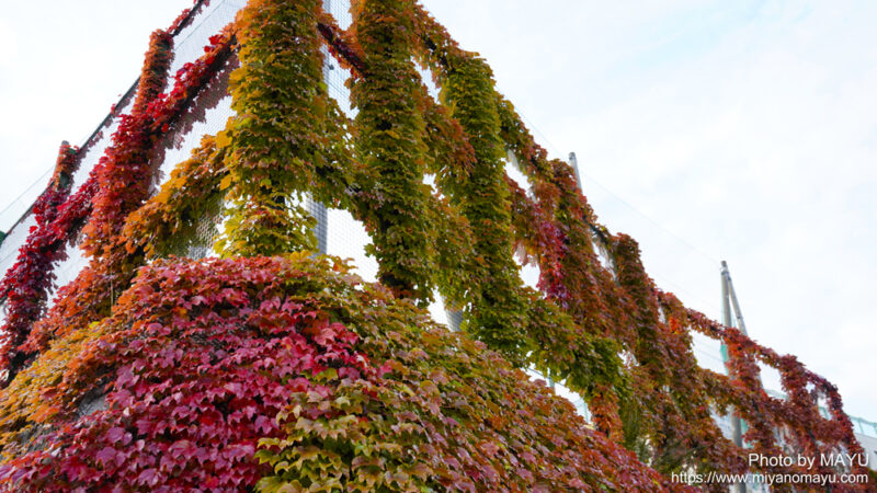 大倉山小学校のフェンスのツタがとてもきれい。円山動物園内も同様ですが、ツタの紅葉が見頃を迎えています。