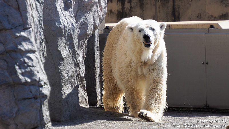 開園してすぐの時間は、サツキはプールサイドでまったりしていました。どうして鼻を動かしているのだろうと、よく見たらハエが数匹留まっており、鬱陶しい気持ちがよく伝わりました。寒くなれば虫もいなくなるので、もうしばらくの辛抱というところでしょうか。それにしても、よく動く鼻でした。