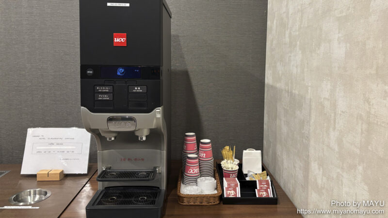 フロント前で無料のドリンクサービス。(15:00~22:00)