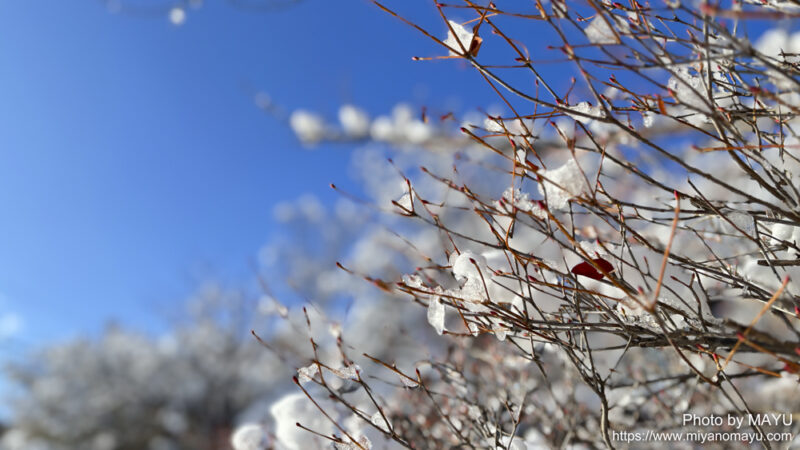 札幌の昼。ここ数日で積もった雪は、日中の日差しでも簡単には溶けなくなってきました。気温が低くなってきたので、氷となってそのまま枝についています。このまま根雪になるんだろうなあと感じています。