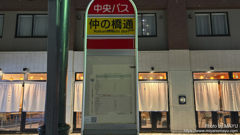 中央バスの「仲の橋通」と言う名前のバス停です。