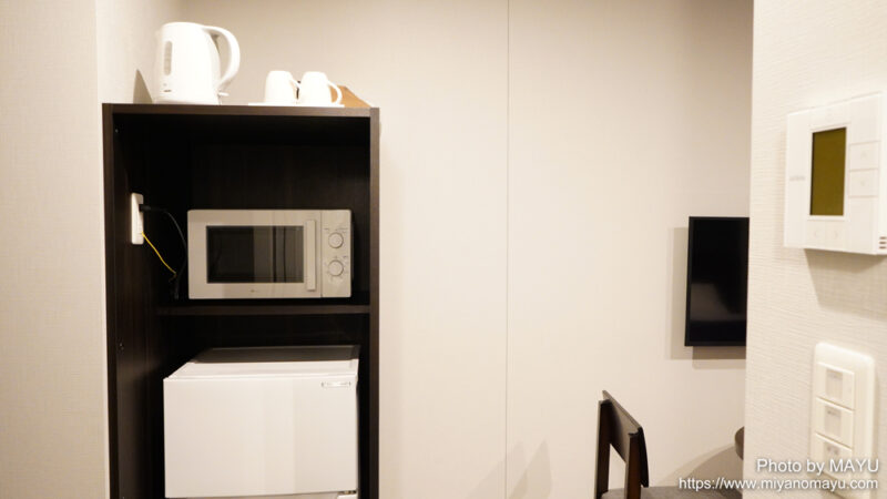 電子レンジ、大きめの冷蔵庫もあり。