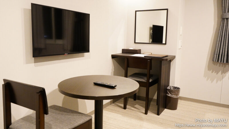 テレビ、小型の机もあり、部屋も広めで過ごしやすい。